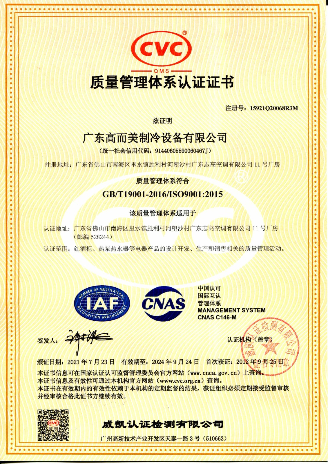 廣東高而美制冷設(shè)備有限公司于2012年初注冊成立,是一家專業(yè)從事節(jié)能、環(huán)保產(chǎn)品設(shè)備研發(fā)、生產(chǎn)和銷售服務(wù)的國家高新技術(shù)企業(yè)。集團(tuán)旗下廣東高而美制冷設(shè)備有限公司、佛山市大晟精密機(jī)械有限公司、廣西高而美節(jié)能科技有限公司、柳州市大晟精密機(jī)械有限公司四個控股子公司和新樂、趙縣兩個銷售分公司。高而美集團(tuán)廣西柳州智能熱泵制造基地一期項目規(guī)劃建筑面積2.5萬平方米于2021年8月竣工并已試投產(chǎn)運行。