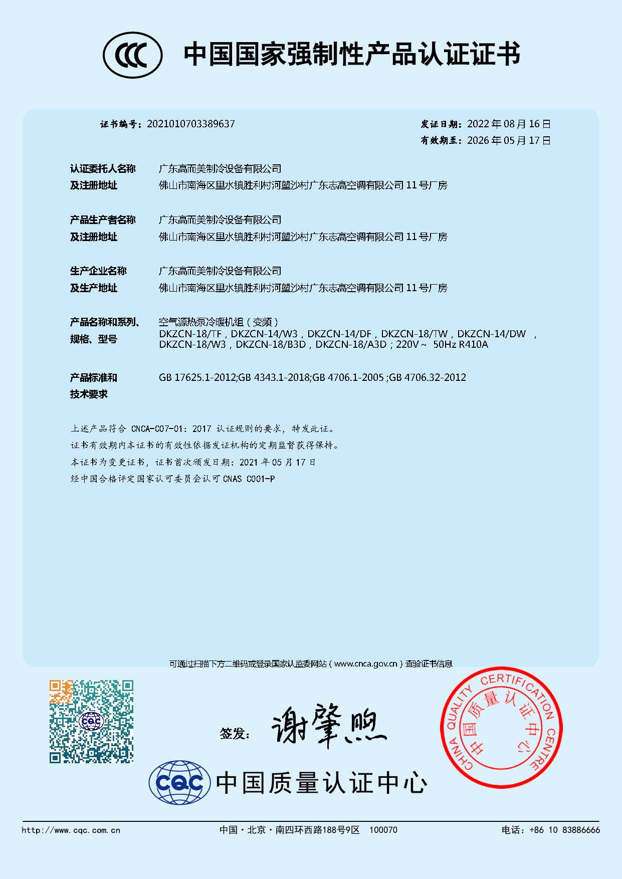 公司建立了國家認(rèn)證認(rèn)可監(jiān)督管理委員會備案認(rèn)可的“能效標(biāo)識能源效率檢測實驗室”,公司檢測檢驗中心2019年獲得國家CNAS認(rèn)證。公司全面通過了ISO9001質(zhì)量管理體系認(rèn)證、ISO14001環(huán)境管理體系認(rèn)證,IEC體系的國際標(biāo)準(zhǔn)QC080000電器有害物質(zhì)管理體系標(biāo)準(zhǔn)認(rèn)證。連續(xù)8年榮獲中國節(jié)能協(xié)會、熱泵產(chǎn)業(yè)聯(lián)盟“十大領(lǐng)軍品牌”企業(yè)。獲得廣東省認(rèn)定的“廣東省低碳冷熱設(shè)備工程技術(shù)研究中心”、“廣東省級企業(yè)技術(shù)中心”、“廣東省高成長中小企業(yè)”、廣東省專精特新企業(yè)”、“廣東省知識產(chǎn)權(quán)示范企業(yè)”、“佛山市細(xì)分行業(yè)龍頭企業(yè)”、“佛山市標(biāo)桿高新技術(shù)企業(yè)”、2022年榮獲國家級專精特新“小巨人”企業(yè)、“廣東知名品牌”等企業(yè)資質(zhì)和榮譽(yù)。公司參與了多項國家標(biāo)準(zhǔn)、行業(yè)標(biāo)準(zhǔn)的編制,在行業(yè)中保持研發(fā)能力領(lǐng)先地位。擁有熱泵核心專利技術(shù)129件,其中發(fā)明專利65件,計算機(jī)軟著8件。通過多年自主研發(fā)掌握了“微通道分液冷凝技術(shù)(榮獲2018年廣東科技進(jìn)步獎)”“跨溫區(qū)高能效熱泵技術(shù)”“多模式中高溫?zé)岜煤娓杉夹g(shù)”等多項國內(nèi)領(lǐng)先國際先進(jìn)的熱泵核心技術(shù)。公司自主研發(fā)的“高能效空氣源熱泵熱水機(jī)組”“低溫型熱泵采暖、干燥機(jī)組”入選工信部全國工業(yè)領(lǐng)域電力需求側(cè)管理第二批參考產(chǎn)品(技術(shù))目錄。2018年獲得工信部國家中小企業(yè)發(fā)展基金戰(zhàn)略投資。2020年經(jīng)廣東省教育廳批準(zhǔn)與廣東工業(yè)大學(xué)合作設(shè)立聯(lián)合培養(yǎng)研究生示范基地、廣東省首批產(chǎn)教融合型試點企業(yè)。